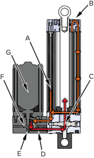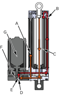 [B] 加壓液壓油流入缸蓋端以縮回