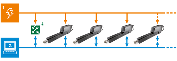 Traditional electric actuators are operated by a stand-alone ECU. By using actuators with integrated J1939 support, however, only a single cable needs to run from the controller to all actuators. Each actuator has a unique address, listens to every signal from the vehicle control system and responds only to signals designated for its operation. These smart actuators also provide basic diagnostics that alert the control unit of its speed and position, enabling a greater level of automation.